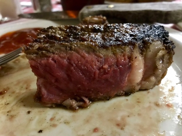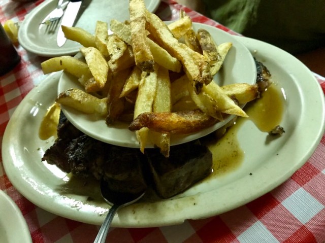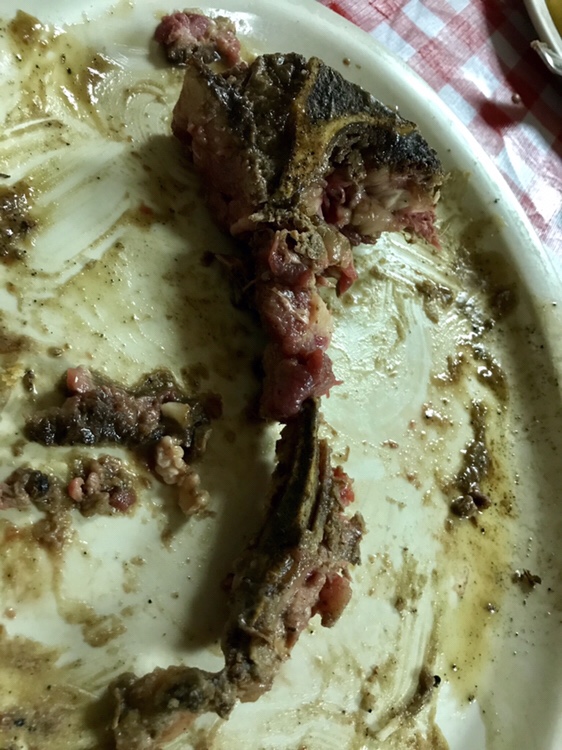 This may have been the best porterhouse I’ve ever had. We sopped the juice with the toast and fries. We used the knife to cut as much meat as we could from the bone. Then we gnawed the bone.