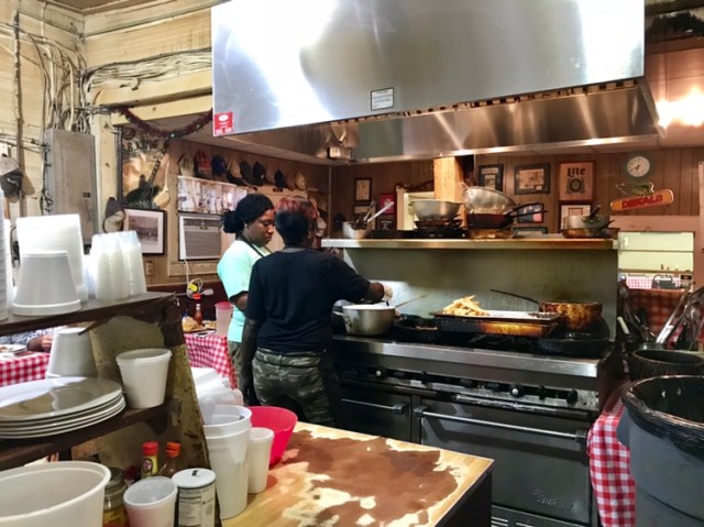 Back in the 40s, there was a doctor who stopped by this grocery store on his way home to have them cook him a steak. He came in, off the back porch (now the front door), through the kitchen for years. But when he started bringing his friends, they created a “white” entrance and dining room in the back of the restaurant. It stayed that way into the 60s, when, with integration, they closed off that front (back) door and the entrance has remained in the kitchen ever since.