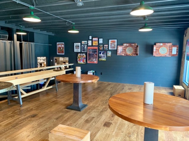 There is a game area in the back with darts and shuffleboard – an area which fronts the kitchen. And behind the curtain (in the photo below) is more seating.