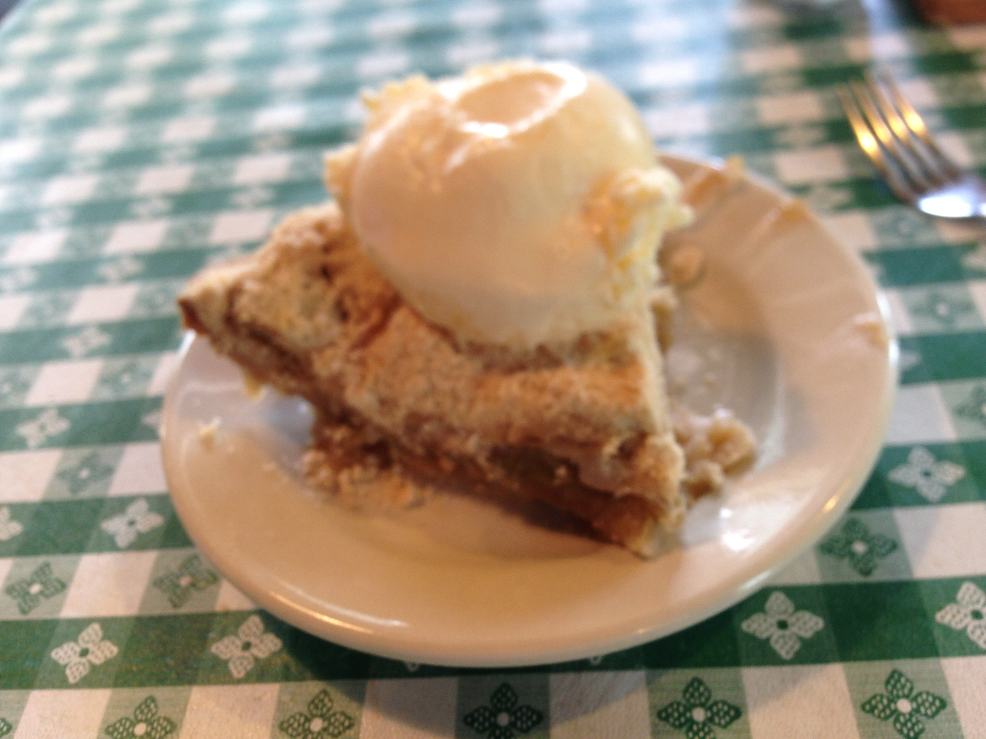 Possibly, the most fascinating thing about the original entry (which I never published) is that my pictures are so bad (which is why I never finished it). Later that day, I noticed while I was looking at the pictures I took at Slow Bone how blurry they were. So I got to my second stop, at Charlie’s, and when I went to take a photo of the ice cream and pie (the picture to the left), the first thing I did was clean the lens. On the way back home, I realized my pictures of that meal were blurry, too. I couldn’t figure it out.