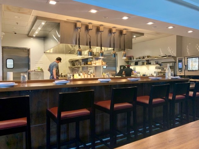 One of the advantages of dining alone, and dining early, is that often you can get a quality, quick meal. The restaurant is small, and intimate, with the centerpiece being the open kitchen and the chef’s table surrounding it.