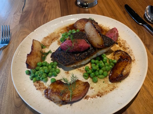 I followed it with red snapper with rhubarb jam, roasted peaches and green peas. Honestly, it is rare, for me, to go to a nice restaurant and not have something in a dish that I wouldn’t order on it’s own (there are always scallions, or mustard or …). Every component of this dish was designed for me – or at least is appeared that way to me. This was a wonderful meal – beautiful and well composed.