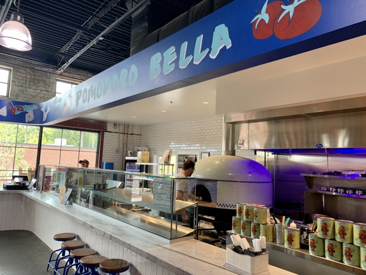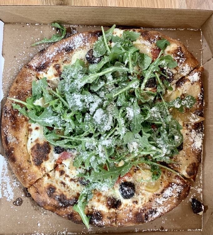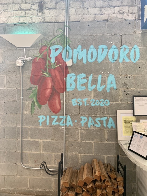 After weighing all the options, my beloved decided on pizza, from Pomodoro Bella. They had several pre-designed options, as well as build your own choices. These are quick-fired brick oven pizzas.