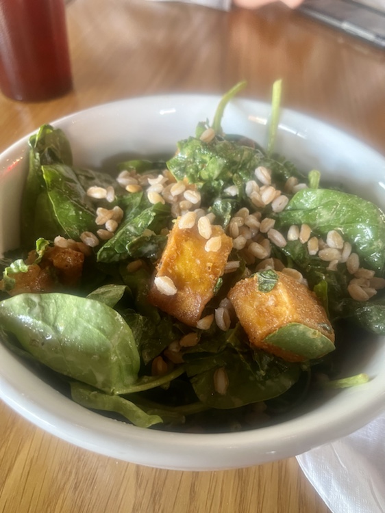 My beloved chose the kale salad, as her entree, which was kale and spinach, roasted butternut squash, faro and a nuc cham dressing.