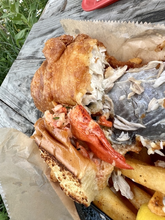 We did share a bit of our meals with each other – you can see in the photo above the chunk of claw meat on a bun and the perfect cook on the fish. Both meats were excellently cooked – I would have that fish again, today. A gentleman at the table next to us had the bait box – his fish was fried whole, like a soft shell crab and he was chowing down on it. I’m glad I went with the pollock. And the fries were excellent, as a bonus. What a perfect way to cap a trip to New England.