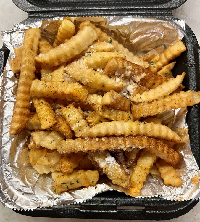 This is the order fries that came as one meal. We ordered one of them, dusted in their “crack powder”. I don’t know how to describe it, other than “ranch powder + salt + sugar + salt + something”. The fries were fine, but some were a little on the over fried side, without being crispy.