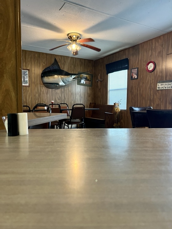 Located in three (or four) trailers, down a dirt road, you pretty much have to know where you’re going to get there. When I arrived (around 6:15), I was a little early for dinner, as everyone else started to arrive around 6:45. And by everyone, I mean the locals and weekenders (apparently, there are lot of folks with places there from Savannah). Parties of two to nine, with their beverages in hand, some in bottles, some in cans and others in red Solo cups (seems to be BYOB), came waltzing in, moved fans (in some cases) and seated themselves.