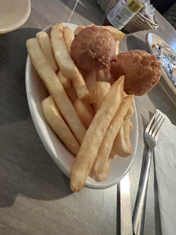On to the main. I good sized flounder filet, stuffed with deviled crab and <virtually> floating in butter. How could it be bad? It definitely was not. Steaming hot and absolutely delicious, and I don’t really like crab… As I was eating, a woman from the other table came over and asked me (as I waited and waited) why I was taking pictures of my food. I told her about the blog, and went to grab a card out of the truck as I left. I went back in to hand it to her and they asked me if I had the fried shrimp. When I said no, she handed me one, by the tail. I sat with them for a few minutes, getting some ideas for Savannah food (they were from that area) and telling them about my finds there. Excellent fish, really awesome fellow diners. A nice start to a Labor Day weekend.