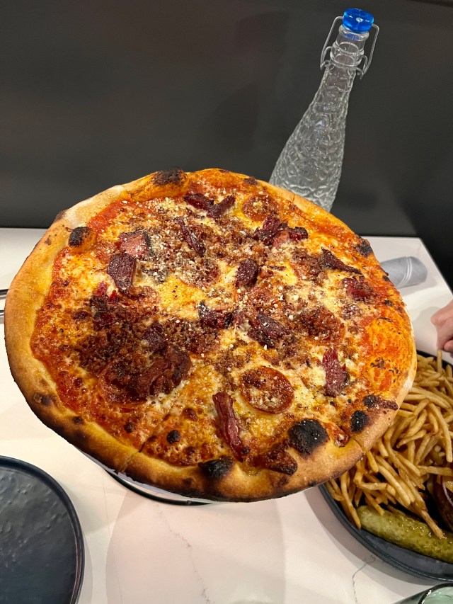 Arriving we were seated in an open space, fairly quickly and took a look at the menus. Opened in 2022, by the team behind Lazy Betty’s (which just received a Michelin star and is on “the list”) and Juniper Cafe (which closed it’s restaurant side before we ever made it), the menu has pizzas, a few entrees and a list of sharables. On the positive side, the food was of excellent quality. And,from the menu, was locally sourced. I ordered a pizza,