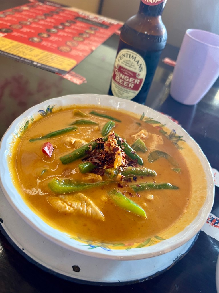 This was a delicious dish, full of heat and flavor, with enough salt from the pork belly to carry the dish. I’ve eaten pad dishes at many Thai restaurants around town and this was among the best. In the area for lunch, a couple of months later, I ordered the penang curry with chicken (and a really spicy ginger beer – Pentiman’s – that I’d never tried before).