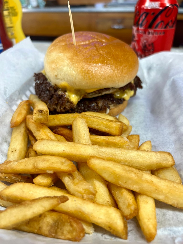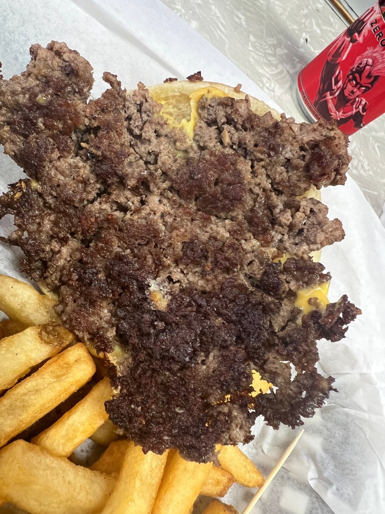 with fries. I’ve eaten many a burger and smash burgers are among my favorites – fresh beef mashed flat on a griddle.
