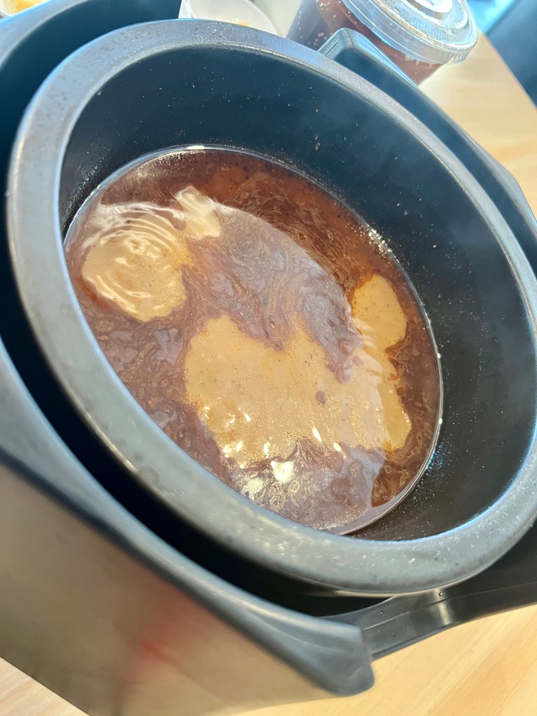 The broth arrives in a container which is designed to keep the heat. There was a sign on the table warning that this was 150 degrees Celsius (300 degrees Fahrenheit), which explains why it was too stinking hot to eat. I put the noodles and some sides in the Mala broth (when I asked what Mala was, the best answer the server and I could agree upon was “spicy”) and waited. After a few minutes, I pulled the noodles back into the bowl they came from and used the giant spoon to ladle broth back atop them. After a bit of cooling, I was able to sip the soup and eat the noodles – and she did not lie about the spicy. Man, was this tasty. The hiccups immediately started. While things were cooling, the chicken arrived.