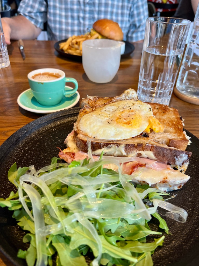 My dear wife chose the croque monsieur, with the egg over hard, which was served with an arugula and fennel salad. The salad was undressed, which we figured was to cut the richness of the sandwich. I knew she was going to order this when we first saw the menu because the first word in the description was Gruyère. That is her Kryptonite (like wagyu and pork belly) are for me – when we see it, we stop reading and know what we’re having.