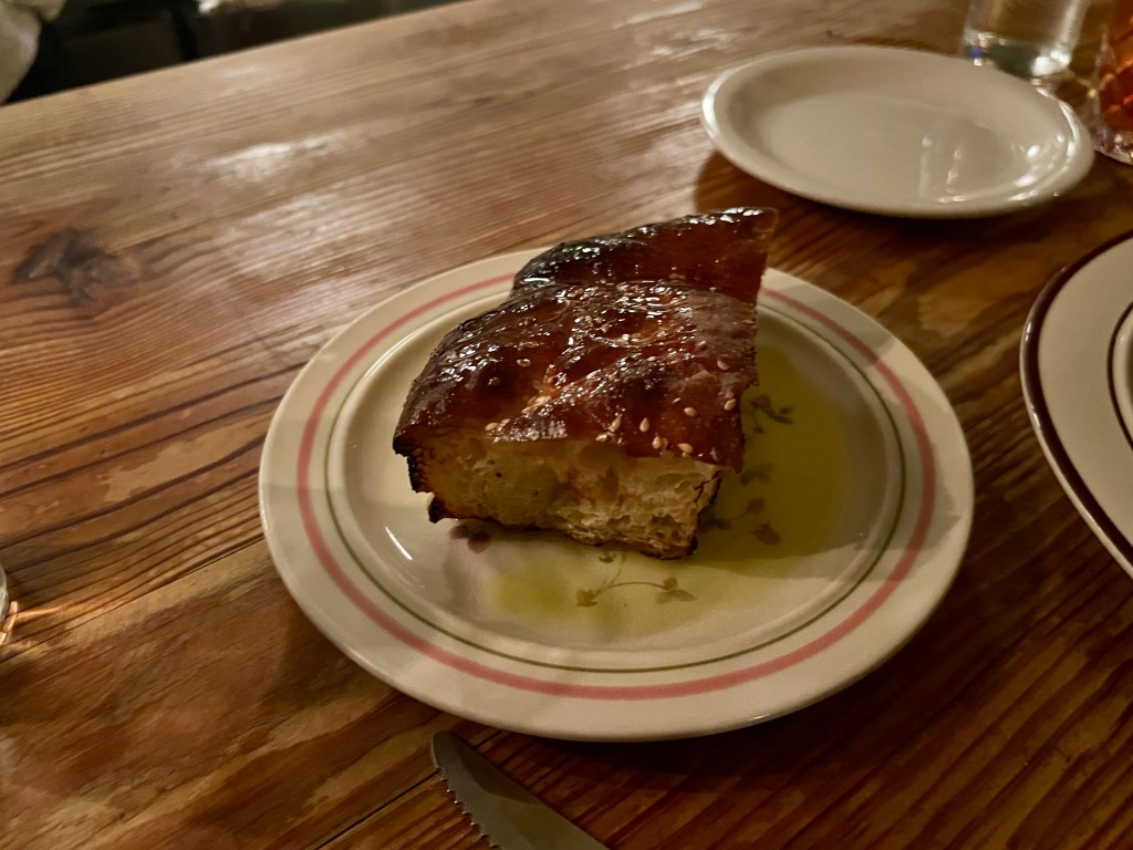 He, graciously, shared a bite of the chicken and his focaccia bread.