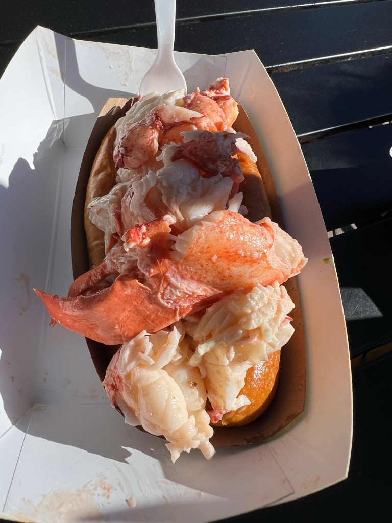 I chose a small hot lobster roll, which had a generous amount of chunk meat, with butter. I like lobster, but don’t love it, so a lobster roll is the prime mix of reward / effort for me. My beloved, on the other hand, believes in the struggle.
